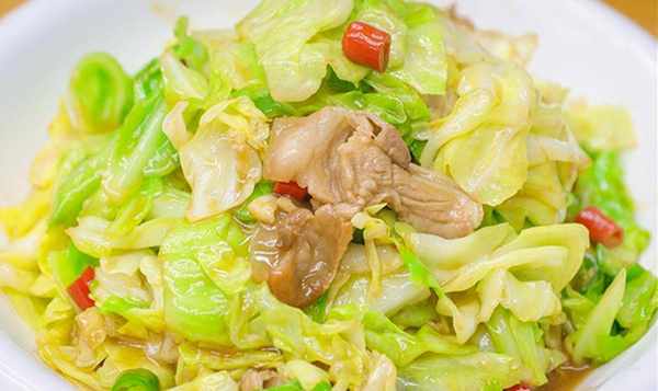 3、然后倒入卷心菜,将紫甘蓝用大火快速炒熟,加盐、味精、生抽、辣鲜酱调味,沿锅边倒入陈醋,大火煮熟。释放香味,新鲜美味的白菜丝就做好了。