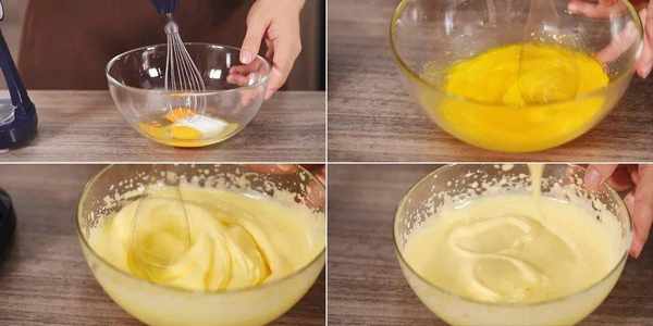 用电动打蛋器打发。随着打发的进行蛋液会变得越来越蓬松。整个过程可能需要10分钟左右。当打发到提起打蛋器可以在盆里画出一个8字,就说明打发完成了。