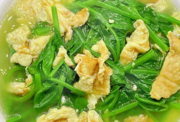 准备食材:菠菜、鸡蛋罐头、蒜末、姜末。