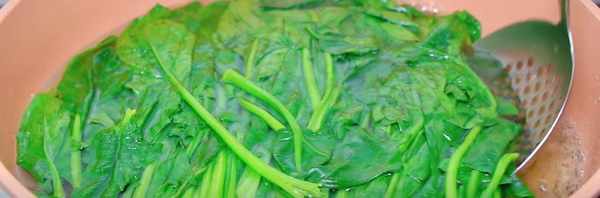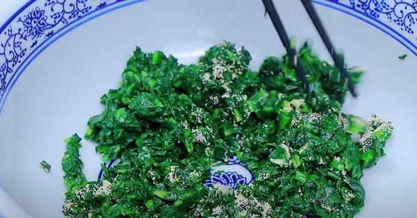 步骤1、先将洗净的菠菜放入锅中焯水。水热后加盐和少许油,放入菠菜焯30秒左右。焯水后捞出放入冷水中冷却。