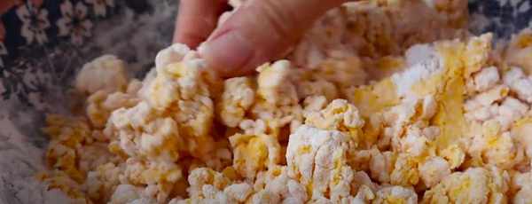 第六步,取一小块发酵好的面团,用擀面杖擀成面团,包在碗里。