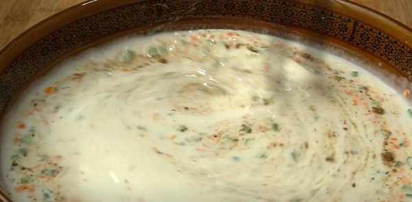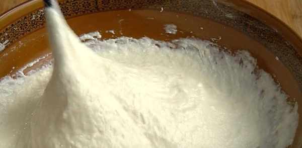 2、再倒入300毫升冷水,和成稀面团,静置10分钟。面粉和水的比例是1:2,按照这个比例就好了。