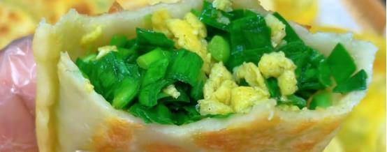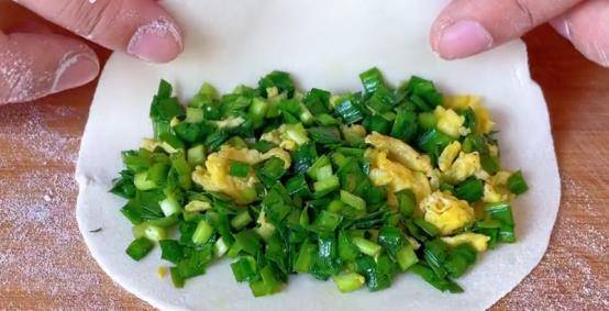 翻到底部呈金黄色。然后将另一面煎至另一面呈金黄色。最后,韭菜盒子超软,里面的韭菜也是翠绿的。