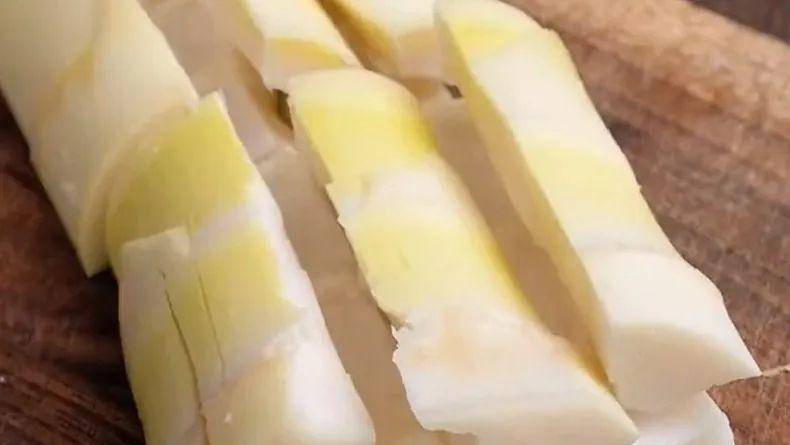 4.这是蒸笋。它有一个特别光滑的表面。打开罐子的盖子,闻起来很清新,很清新。把锅烧开,然后用抹刀翻动几下,搅拌均匀。