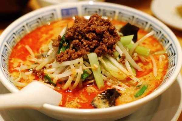 于是还是陈建民师傅,又贴心地推出了改良版担担面。把川式的小碗换成日本人吃拉面用的大碗,再将芝麻酱和少量辣椒油混合制成汤底,辣味骤减。现在日本还有无汤担担面和凉拌担担面之类……