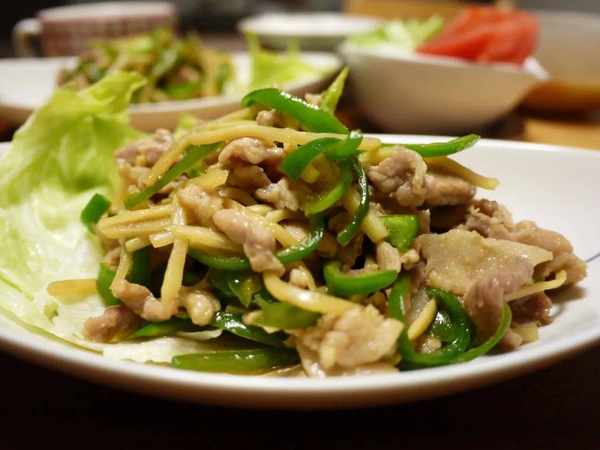 日式青椒肉丝,大多采用牛肉炒制,为了增加口感层次还会加少量笋丝,其它步骤倒是和中国本土的做法差不多。