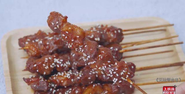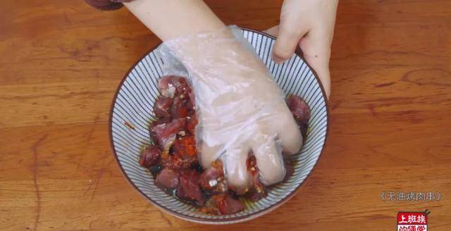 做一个酱香麻辣味的:肉块里加入1勺蚝油、半勺红烧酱油、1勺料酒、小半勺盐、1勺叉烧酱、1勺淀粉、1勺葱姜末、半勺孜然粉、1勺辣椒面和半勺白胡椒粉抓拌均匀,腌上30分钟,这个配方烤出来的颜色巨好看。