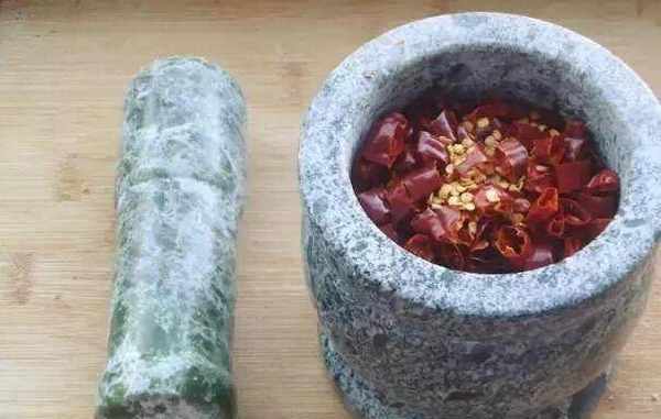 捣成辣椒粉就可以放入一个耐高温的碗里