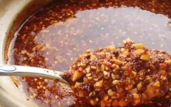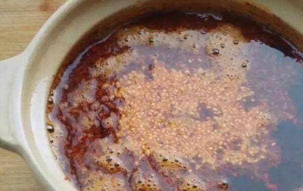 等油微微冒烟了就关火用盛汤的勺一勺一勺把油舀进碗里一只手舀油一只手不停地搅拌辣椒粉