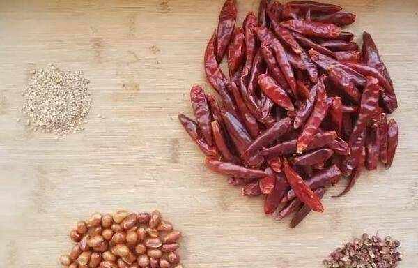 等红干椒温度发烫了之后就关火等锅完全凉了之后再用小火炒至发烫再晾凉再这样做一遍(加热三次)