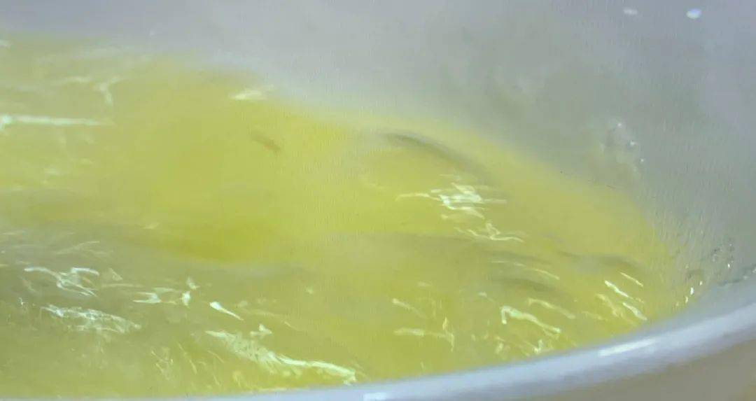 然后往蛋清里边加清汤,比例是1:1,加点盐、味精,放点黄酒去腥,放一点点白糖,然后加上葱姜水,把它打匀,放一点水淀粉。蛋清和水要充分融合在一起,要把蛋清融入到汤汁里边。