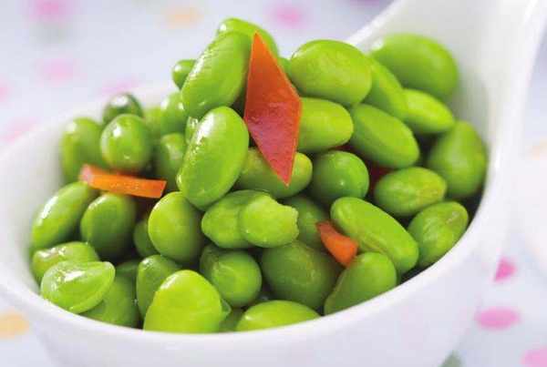 制作步骤:1 、嫩蚕豆去皮后,将其一分为二成豆瓣状,放入水中淘洗干净,下入沸水锅中煮熟,快速捞入冷水盆中漂凉,沥水。