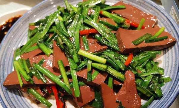 配方:鸭血、韭菜、姜蒜、郫县豆瓣、盐、鸡精、料酒