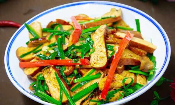 配方:韭菜、香干、小米椒、盐、生抽、蚝油