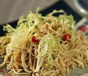 原料:干丝、金针菇、苦菊、小米椒、蒜末、小葱、浓汤宝、生抽、香醋、小麻油