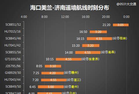 海口-济南方向的航班应该说时刻也是分布的还算没有大问题,整体时刻有些