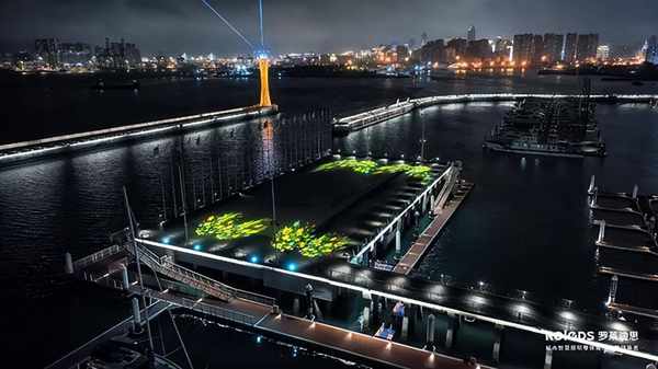 码头广场氛围投影,结合主题鲜明的灯光节目,以可控可变的方式,带来科技律动与实时动态的效果,营造一个梦幻或震撼或浪漫的体验空间,为市民游客带来惊喜愉悦的视觉享受和艺术体验。