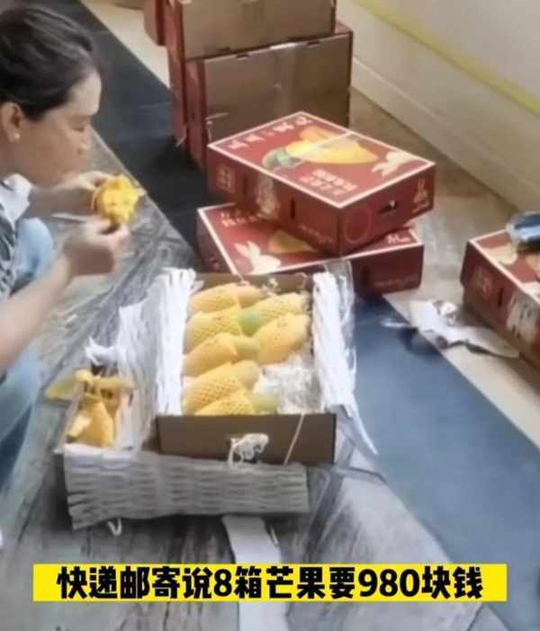 8箱芒果快递费要980,女子嫌贵当场吃完!堪比王宝强在机场喝奶!
