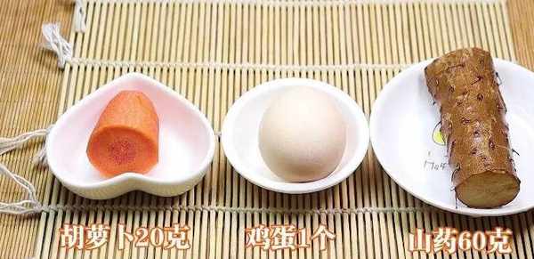 选用到的食材有山药,这是一道健脾生津的食材,宝宝常吃有助于调节肠道健康,搭配维生素丰富的胡萝卜,让小肠口感清甜且鲜味,加上蛋白质高的鸡蛋,补充宝宝体内所需的营养。