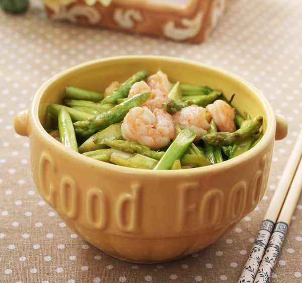 材料:芦笋200克、虾仁100克