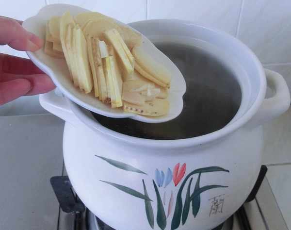 6.然后再放入笋,调味后,再煲15分钟。