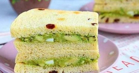 第一步,把牛油果切开,之后用勺子把牛油果里面的果肉部分挖出来,放进碗中。接着把果肉捣成泥。用面包机烤三片面包,在烤好的面包片上,涂抹适量的牛油果肉泥,然后铺上一层芝士,两片香肠,最后再盖上一层面包片。然后重复一边这个步骤,再铺上一层。之后把面包片对角切开。这道牛油果肉三明治就完成了。