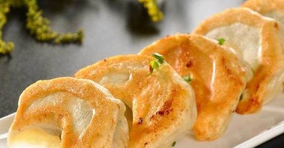锅贴用生饺子加水和油一起煎制的。锅贴上完浆后,外面那一层薄薄酥酥的外衣是衡量锅贴地不地道的标准。