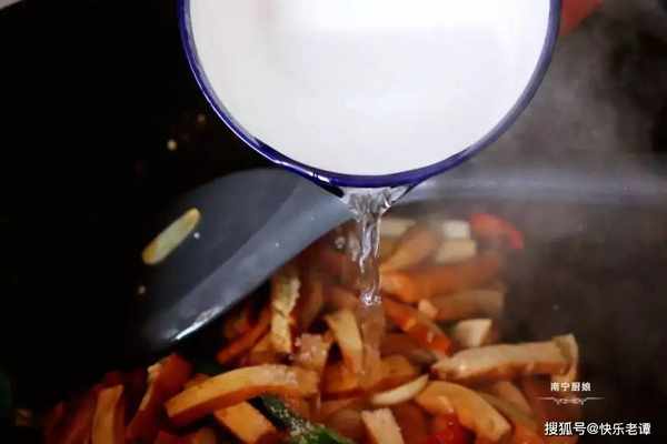 6、因为豆干需要较长的时间才能煮熟,而且也不容易入味,所以为了能使豆干吸饱汤汁,更有味道,可以在锅中加入一小碗清水,接着拿出锅盖焖至两分钟。