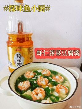 享受美食的同时,也要记得保证营养摄入。这道用金龙鱼稻米油烹制的虾仁荠菜豆腐羹食谱营养丰富,鲜美有暖胃,非常适合大家在家做,记得尝试一下噢!