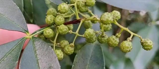 它的叶片问为三片,有点像金樱子的叶片,而且它的果实非常的多,很多四川的朋友估计它们就非常熟悉,这种就是花椒,对于这种花椒肯定不少网友对它钟爱有加,因为它的花椒只可以作为美食的佐料,我们做酸菜鱼的时候都会放一点花椒,能够提升这个口感,而且也有人会做水煮滑鸡的时候放一点这种花椒也能够起到很好的提鲜。