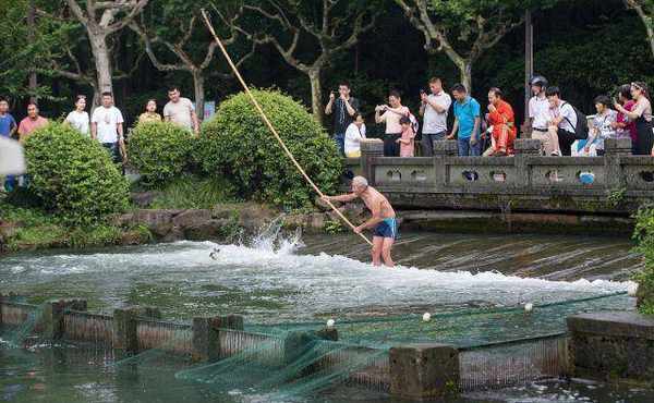 与此同时,每当小南湖进水时,不少杭州市民也来到这里下水捕鱼,每次都会吸引众人围观。