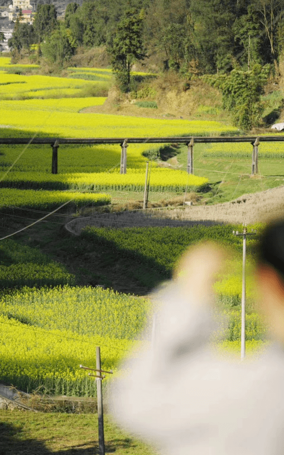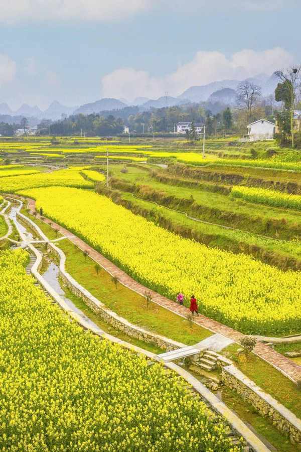 此时,赤水镇枫岭村百亩梯田油菜花开得正旺,在蓝天白云、山与树的交相辉映下,蜿蜒层叠的油菜花田,活泼浪漫又治愈,置身其中,随手一拍就是一组绝美大片。