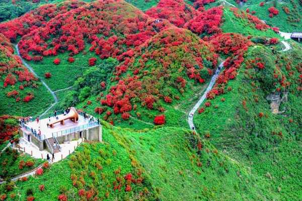 每年春末“人间四月芳菲尽”时,这里的万亩野生高山小叶杜鹃却悄然绽放,花影重叠,枝叶相交,美得摄人心魄。