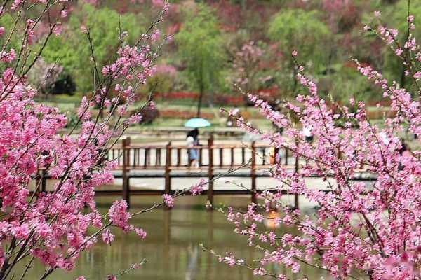 此时的四季花香景区,樱花盛开如海,秀丽淡雅的白樱、骄阳似火的红樱、浪漫秀美的粉樱……