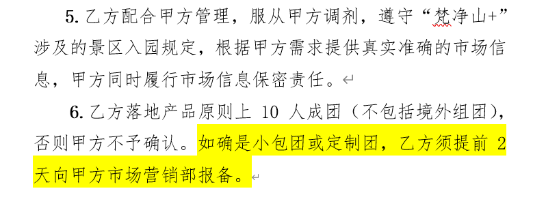 在2023年梵净山联动营销协议中,确实提到了“如确是小包团或定制团,乙方须提前2天向甲方市场营销部报备。”但是在捆绑销售问题上,依旧是我行我素,淡季时的2日游、3日游产品都包含了其他景区及酒店住宿。