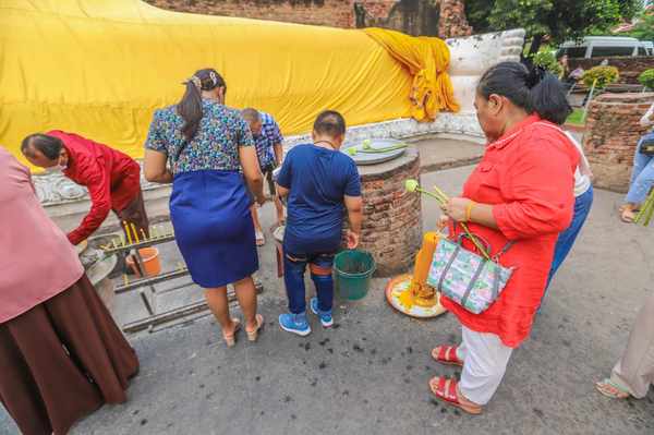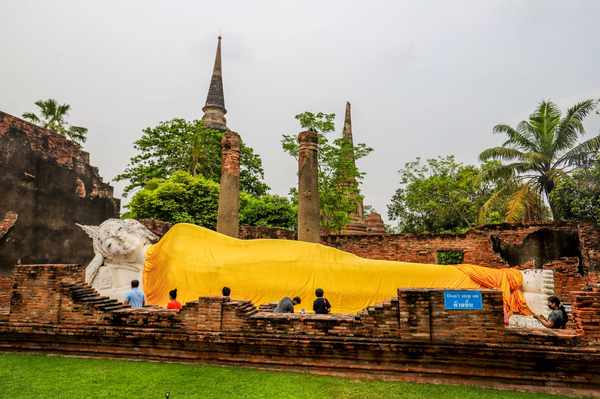 这座佛寺建于14世纪,是泰国历史悠久的佛教寺庙之一。其最著名的特点是其巨大的卧佛像,是泰国最大的佛像之一。