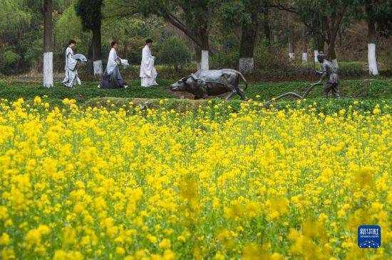 3月21日,游客在湖北省襄阳市古隆中景区游览。