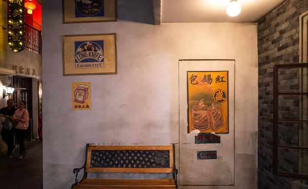 个人比较喜欢看一些谍战影视剧,对这里的场景布置非常熟悉。墙上挂着时代海报。如果逛累了,可以坐在长椅上休息。