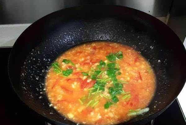 面粉、鸡蛋、食用油、西红柿、葱、香菜、生抽、食盐、鸡汤、香油。