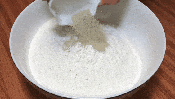 1.准备一个大碗放入面粉300g,酵母3g,白砂糖20g。