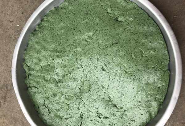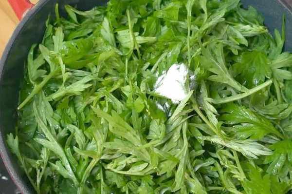 1:将新鲜艾叶的根茎取出,用清水将艾叶洗净,锅中烧开一小锅热水,加入艾叶烧开,可以保持艾叶的颜色,加入烘烤苏打。摆脱艾叶的苦涩滋味。
