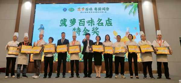 大赛经过专业评委对每款菜肴的严格试菜评选,评出名厨42名,名菜(点)84道;最后综合徐闻、湛江两赛区的企业参评名店得分,诞生了50家徐闻菠萝名店,根据大赛奖项设置,参赛单位不仅获得由徐闻当地政府认可的荣誉,还获得了香飘万里的徐闻菠萝,其中名店特金奖奖励1000斤菠萝,金奖奖励800斤,银奖奖励500斤,真是实至名归的凯旋归来、满载而归。