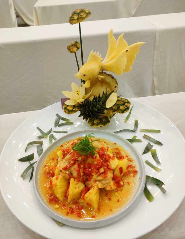 许达斌 椰香菠萝球 菠萝椒酱蒸鱼脯