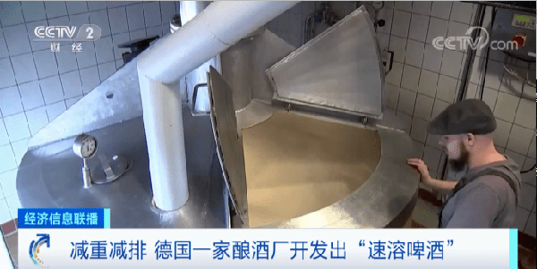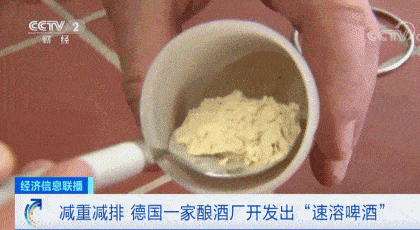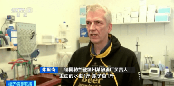 德国勃兰登堡州某酿酒厂负责人 弗里奇:过去喝一瓶啤酒,里面的水重1斤,瓶子重1斤,运输时每瓶啤酒相当于重了2斤,而现在45克啤酒粉就能解决。
