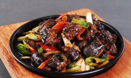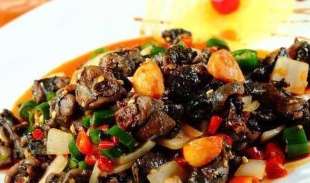 在别处多半用来炖汤的、乌鸡到了广西桂林就因地制宜地改为了爆炒。的确,桂林人一向喜欢酸辣为主的浓重口味,一道桂林米粉由此横扫天下。但“药补不如食补”的风潮也挂到了桂林,清淡的乌鸡汤乏人问津,本地菜馆就自创以火红的干辣椒和果菜丁爆炒的乌鸡块儿,果然大受欢迎,堪称“以酸辣的方式将进补进行到底”。