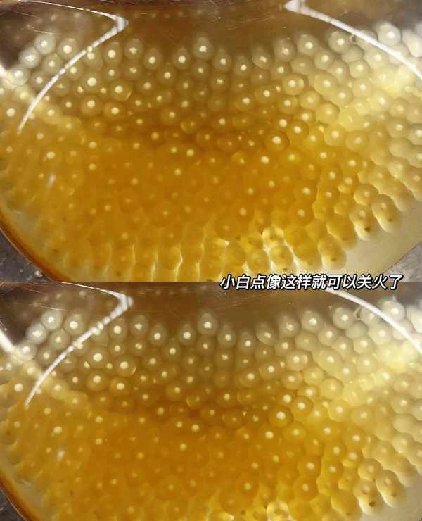 1️⃣熬西米,西米一定要水开后下锅,亲身经历不然会变成熬汤。不断地搅拌,观察西米的小白点慢慢变小