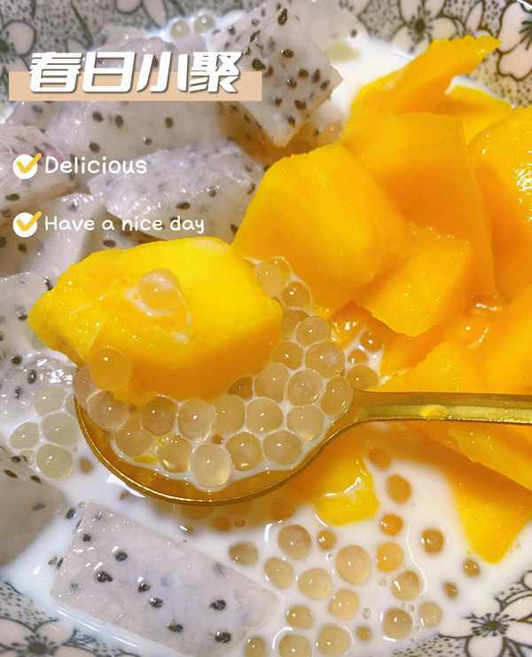 食材:西米,芒果,火龙果,椰奶