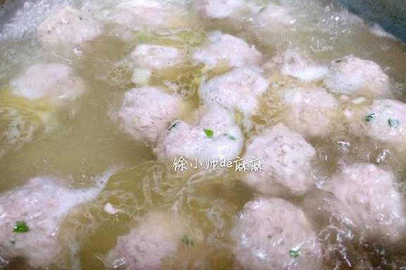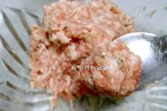 3、用勺子将肉末滚成一个个肉圆放进煮沸的热水中,看到肉圆飘起来就是煮熟了。