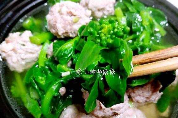 今天分享的做法是肉圆菜心汤,汤鲜味美,养胃又舒坦,春天要多喝汤哦!