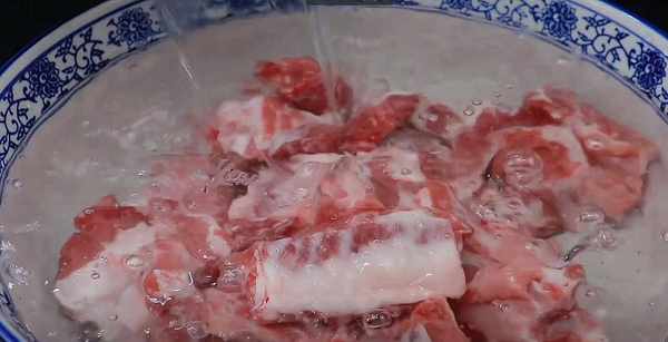 1.准备一份排骨,一家人要吃的量,放入清水中,加一勺盐,浸泡20分钟泡出血水。
